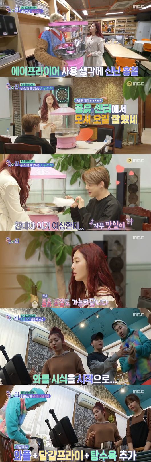 모두 식사를 준비할 무렵, 노홍철과 찬미가 공유 물품들을 가지고 집에 도착했다. 공유템에 이어 식사재료까지 준비, 박하나가 등갈비 김치찜과 김치전을 할 것이라 했다. 김준수는 솜사탕 기계를 발견하며 "원래 단거 안 좋아하는데 계속 먹게된다"며 좋아했다.이를 빌려온 찬미는 "저렴한 가격으로 즐길 수 있는 행복, 가성비가 좋았다"며 뿌듯해했다.