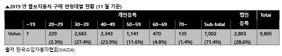 한국수입차협회(KAIDA)가 집계한 1월부터 11월까지 신규 자동차 등록대수에 따르면 볼보차는 총 9,805대를 팔았다. 작년 동기(7,925대) 대비 23.7%가 성장한 수치이며 12월에 200대만 더 하면 대망의 1만대 클럽에 뛰어든다.