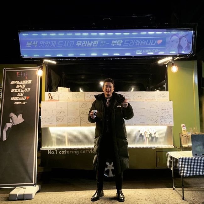공개된 사진 속에는 아내 차예련이 선물한 간식차 앞에서 미소를 지으며 포즈를 취하고 있는 주상욱의 모습 등이 담겨있다. 차예련은 '분식 맛있게 드시고 우리 남편 잘~ 부탁드리겠습니다'라는 메시지로 애정을 드러냈다.