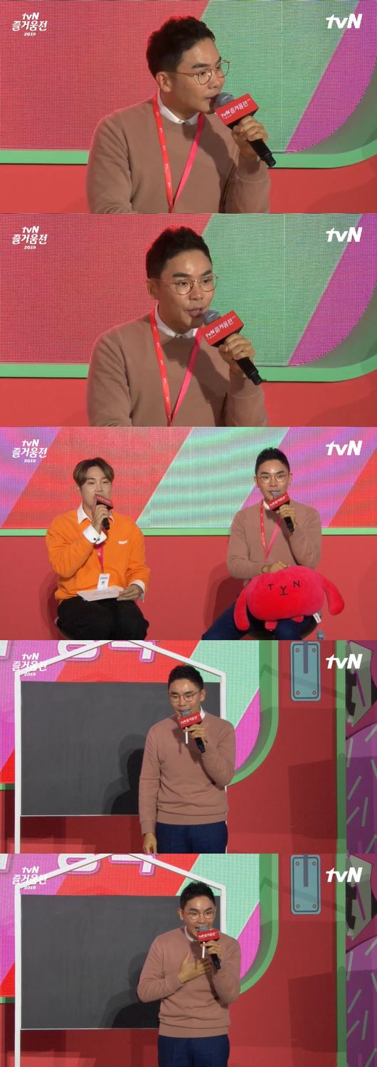 설민석은 14일 오후 서울 동대문디자인플라자 알림1관에서 진행된 'tvN 즐거움전 2019 with 틱톡' 중 '책 읽어드립니다' 코너에서 진행을 맡은 유재환과 책 관련 토크를 나눴다.