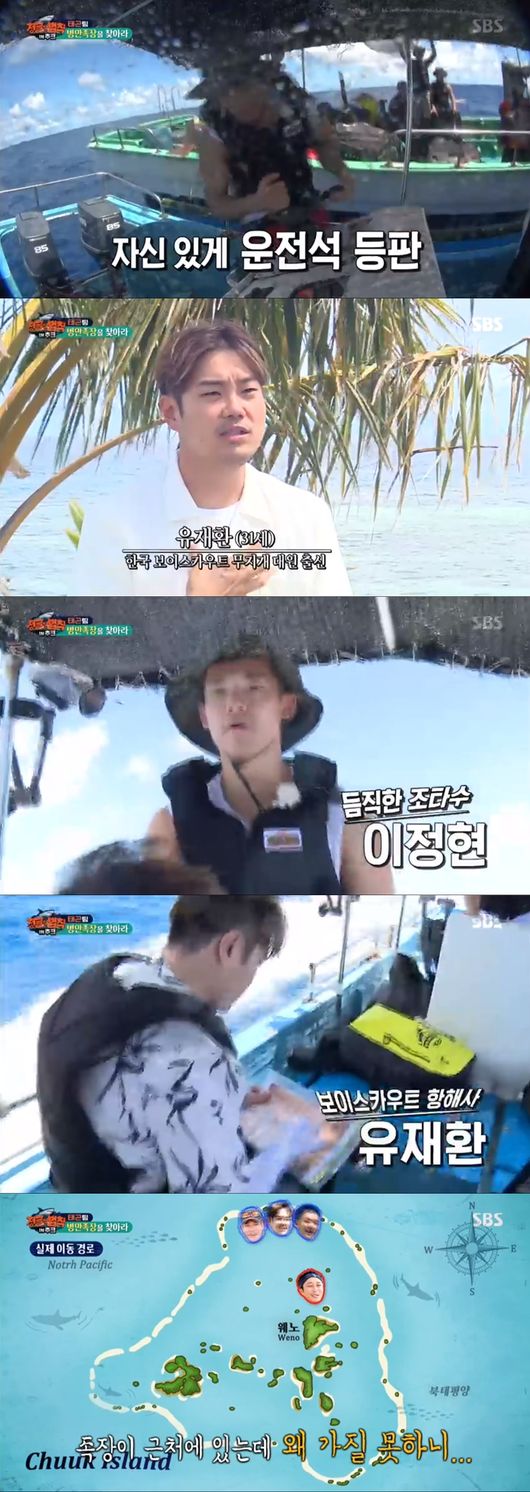 이날 태곤팀은 이태곤, 이정현, 유재환이 함께 했다. 태곤팀은 태평양 바다 한 가운데 조난돼 당황하는 모습을 보였다. 이들에겐 지도와 나침반 뿐이었다.