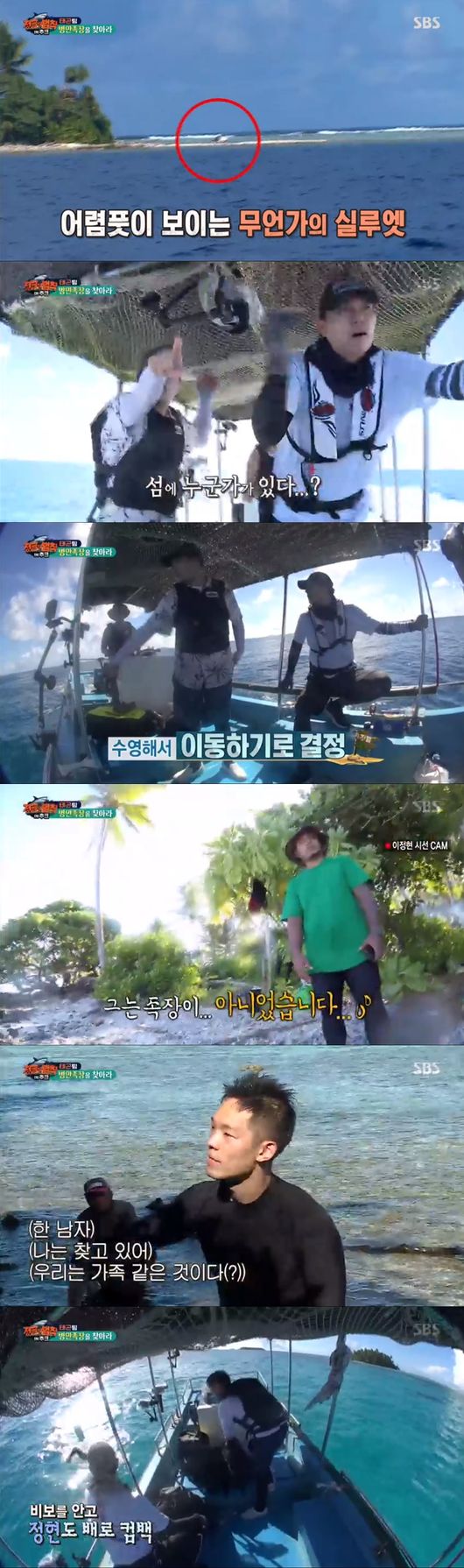 유재환은 근처를 헤매다 섬에서 인기척을 목격했다. 유재환은 "실루엣이 족장님이다. 키도 안 크고 일도 잘하게 생겼다"라며 좋아했다. 하지만 배는 섬에 가까이 갈 수 없었고 결국 이정현이 오리발을 낀 채 섬으로 헤엄쳐 들어갔다.