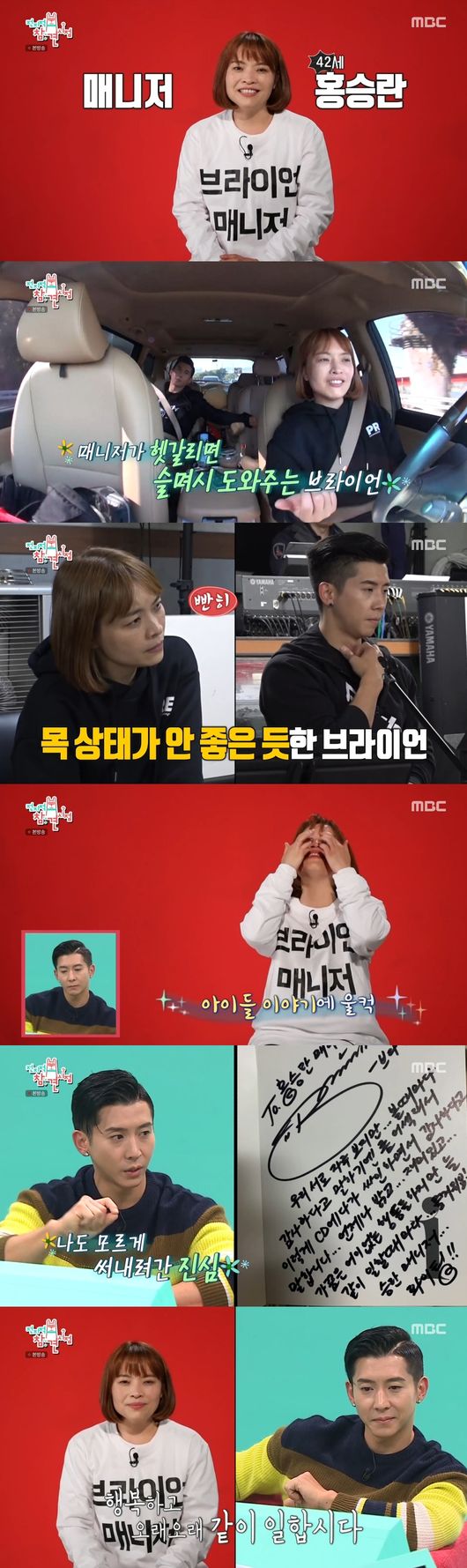 뿐만 아니라 매니저는 브라이언을 향한 애정 어린 잔소리를 아끼지 않았다. 매니저는 브라이언에게 “감기 걸리지 않으려면 찬 음료 먹으면 돼요, 안돼요”라며 건강을 걱정했다. 이에 브라이언이 지지 않고 유쾌하게 대답했고, 매니저는 이 같은 브라이언의 장난 가득한 말도 다 받아주는 모습을 보여 웃음을 더했다.