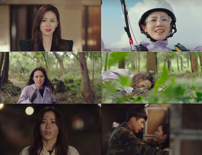 '사랑의 불시착'은 14일 첫 회부터 속도감 있는 전개를 자랑했다. 패러글라이딩 사고가 벌어지며 북한에 불시착한 윤세리(손예진 분)가 감찰 나온 리정혁(현빈 분)을 만나 긴박한 활주극을 벌이는 강렬한 첫 만남을 그렸다.