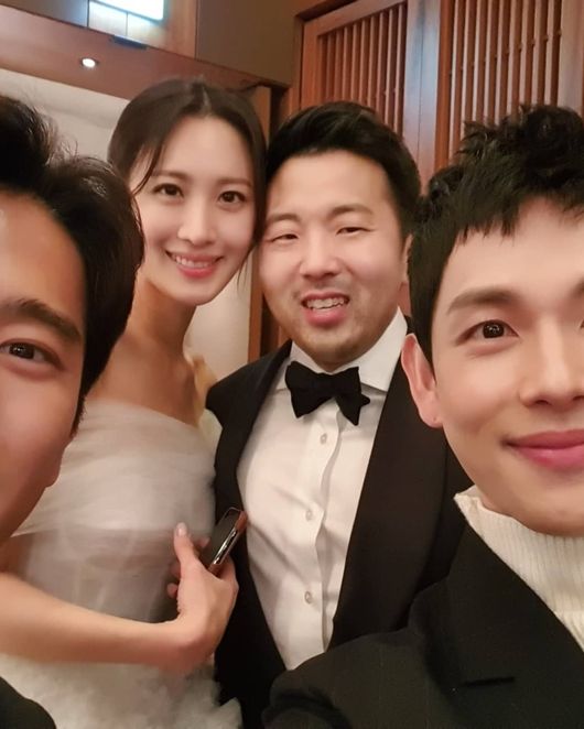 임시완은 "Congratulations on your marriage"라는 문구와 함께 사진 네 장을 공개했다. 사진 속 수현 차민근 부부는 하석진, 임시완과 함께 카메라를 응시하고 있다. 순백의 웨딩드레스를 입은 수현과 턱시도를 차려입은 차민근이 눈에 띈다.