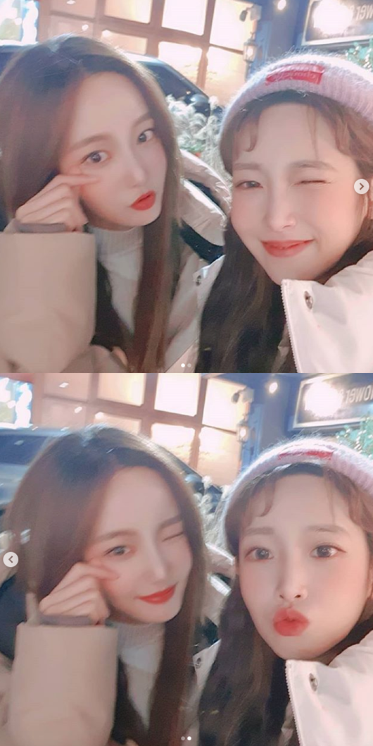 지애는 14일 러블리즈 공식 인스타그램에 “너랑 있으면 하루가 한 시간 같음”이라는 메시지와 함께 연우랑 찍은 사진을 올렸다. 사진에서 두 사람은 따뜻한 겨울 패션의 진수를 뽐내며 사랑스러운 매력을 발산하고 있다.