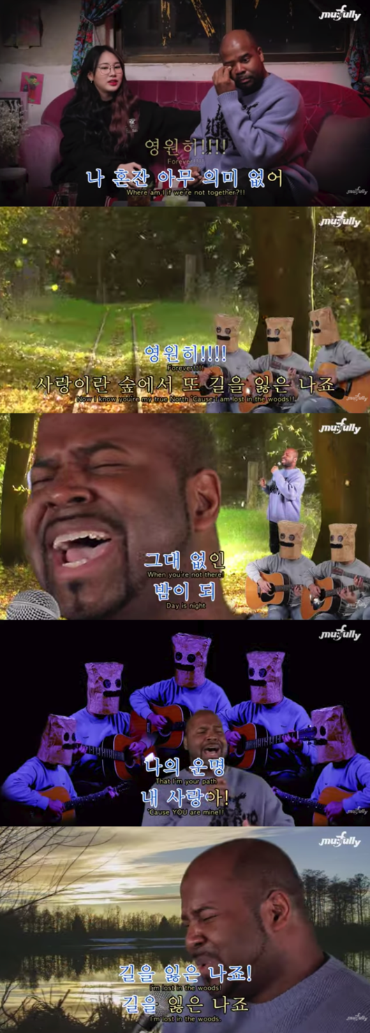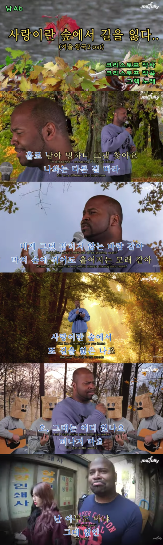 이는 가수 그렉이 영화 ‘겨울왕국2’ OST인 ‘Lost in the Woods’를 부른 것. 그렉은 극중 크리스토퍼가 부른 이 곡을 자신만의 목소리 컬러로 소화했다. 호소력 짙은 보컬과 특유의 흑인 감성을 가득 담아 듣는 이들을 매료시켰다.