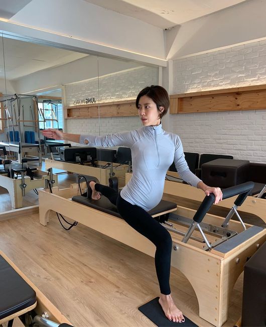 공개된 사진 속 이윤지는 기구 필라테스에 열중하고 있다. 임신 중에도 운동을 게을리하지 않는 모습이 눈길을 끈다.
