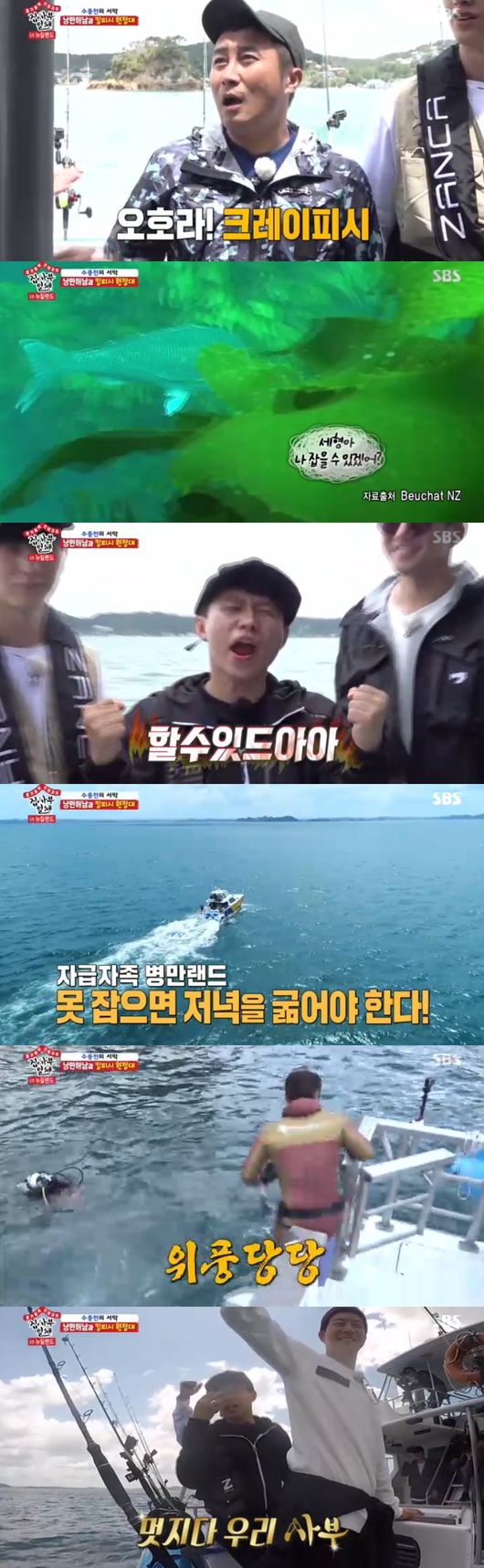 다음은 따사로운 햇살아래, 크리이피시를 얻기 위해 바다로 향했다. 자급자족이기에 잡지 못 하면 저녁을 굶을 수도 있는 상황. 멤버들은 사력을 다해 낚시를 할 것이라고 했고, 김병만이 산소통 없이 맨몸으로 바닷 속으로 입수했다.