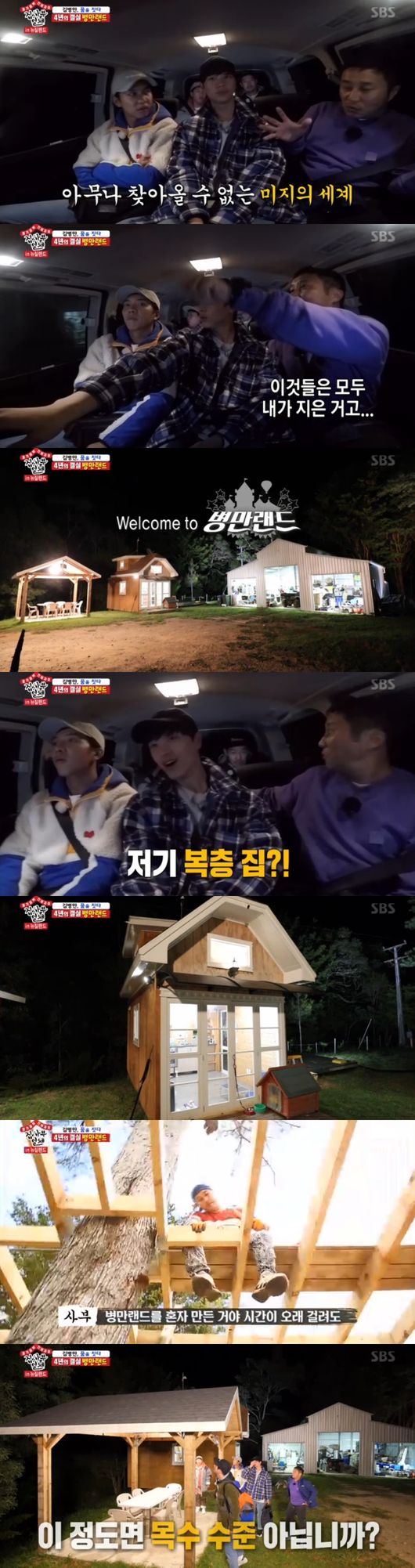이때, 집 입구에 도착했다. 김병만은 직접 자신이 지은 것들이 있다며 복층 집을 소개했다. 자연 낭만이 풍기는 아담한 복층집이었다. 가는 곳곳 자신의 손길이 닿아있다며 파라다이스 같은 공간을 소개했다. 김병만은 "게임 캐릭터가 되어서 병만랜드를 혼자 다 만들어, 시간이 오래 걸렸다"며 특유의 세심함으로 4년동안 정성스레 가꾼 병만랜드를 소개, 어릴 적 꿈의 랜드를 현실로 만들었다고 했다.