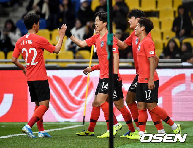 파울루 벤투 감독이 이끄는 한국 축구대표팀(FIFA랭킹 41위)은 15일 오후 부산 아시아드주경기장에서 열린 2019 EAFF E-1 챔피언십(동아시안컵) 2차전 중국(FIFA랭킹 75위)과 경기에서 김민재의 선제골에 힘입어 1-0으로 승리했다. 김민재는 전반 13분 코너킥 공격에 가담해 헤더골을 터뜨렸다.