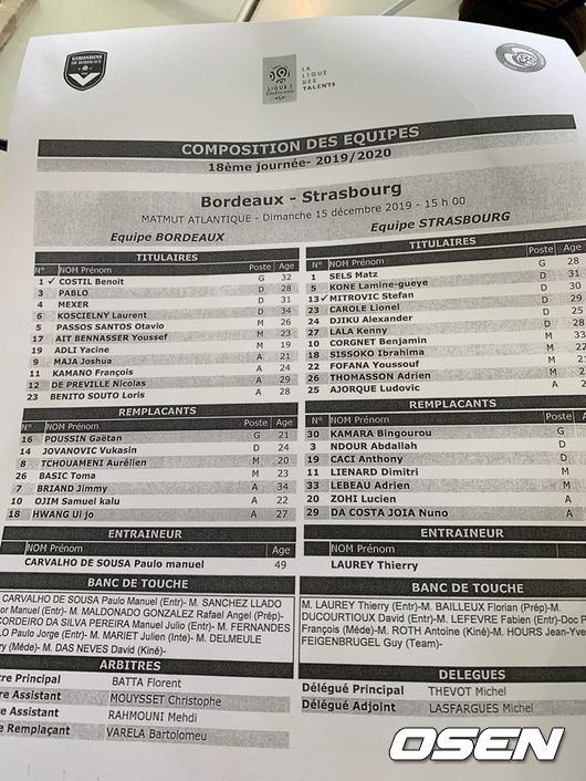 황의조는 교체 명단에 이름을 올렸다. 가벼운 무릎부상을 당했던 황의조는 회복을 마쳤고 지난 마르세유전에 교체 투입됐다.