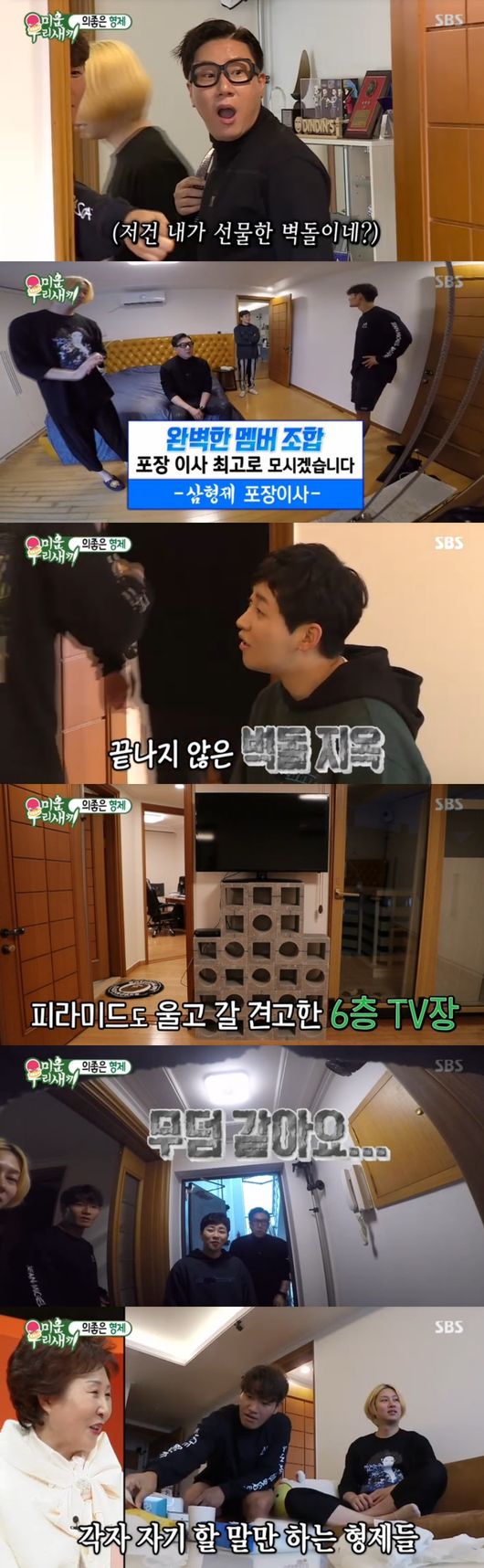 다시 본론으로 돌아와 딘딘의 침실방에 벽돌을 하나둘씩 옮겼다. 급기야 딘딘은 인테리어를 거부했다. 2년 동안 벽돌 인테리어가 지긋지긋하다는 이유에 김종국은 "돌 때문에 잘 된 것"이라 말했다. 이때, 이상민이 깜짝 등장했다. 벽돌의 시초인 이상민 등장에 초토화가 됐다.
