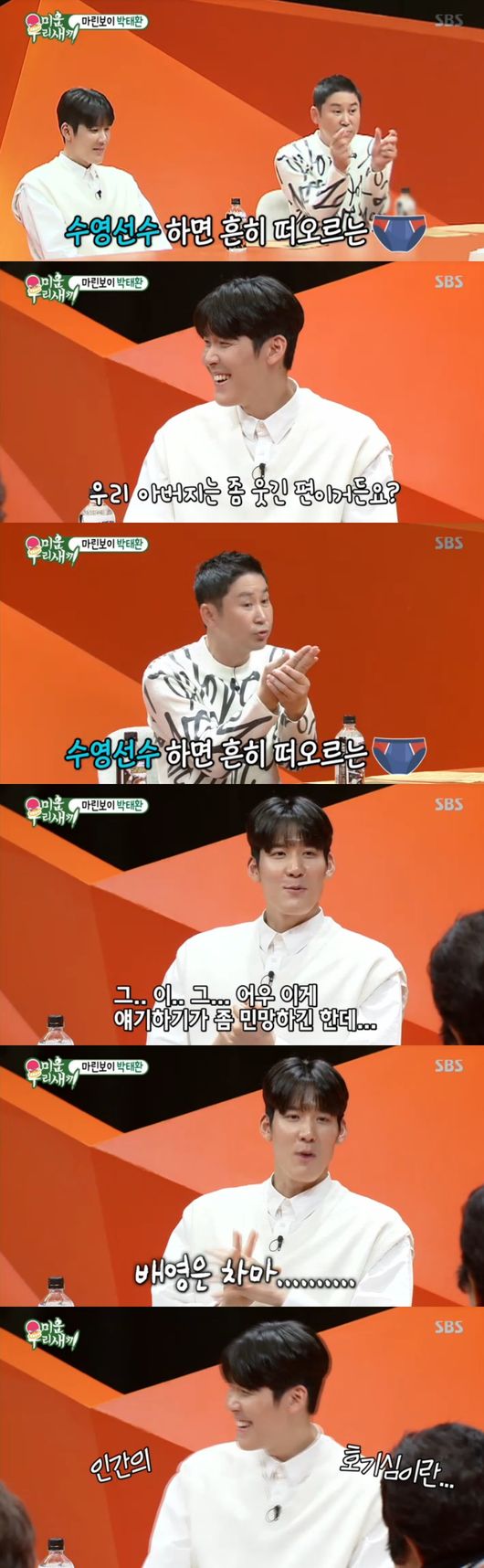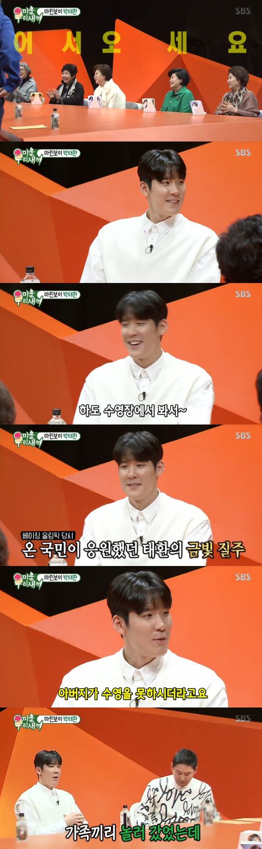 이어 父도 수영을 잘하는지 묻자 박태환은 "아버지는 수영을 잘 못 해, 가족끼리 놀라갔는데 아버지가 수영을 배우지 않은 걸 뒤늦게 알았다"며 일화를 전했다.