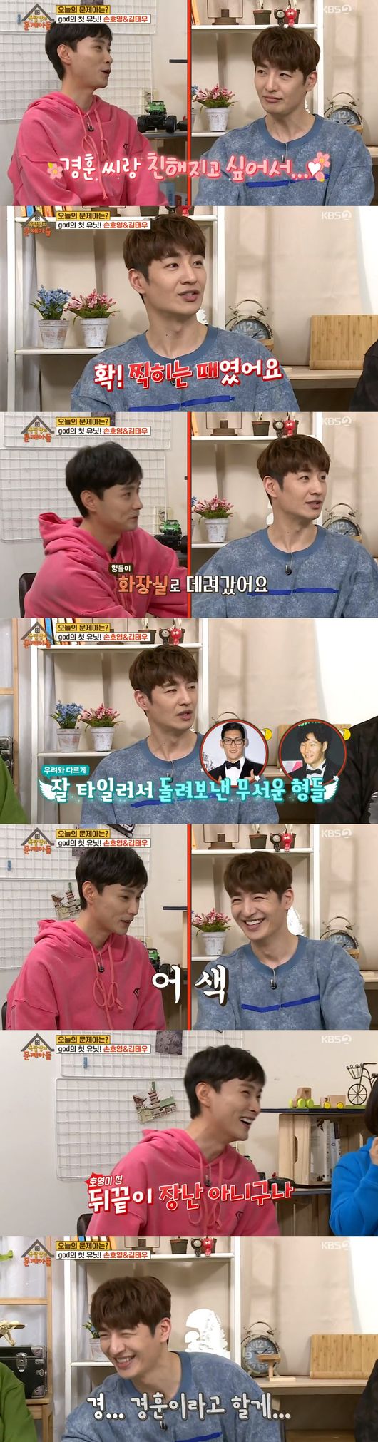 16일 방송된 KBS 2TV 예능 '옥탑방의 문제아들'에서 god의 첫 유닛 '호우'로 돌아온 손호영, 김태우가 게스트로 출연했다.