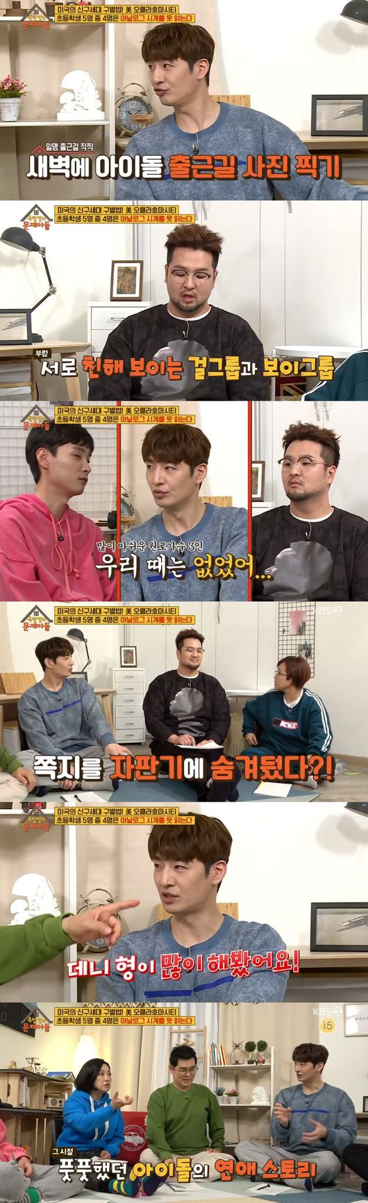 이때, 후배 가수들과 세대차이 느낄 때가 언제인지 물었다. 손호영은 "새벽에 아이돌 출근길 사진 찍는 것, 너무 신기하다"고 했고, 김태우는 "방송국 복도에서 걸그룹과 보이그룹이 서로 친해보이는 것이 부러워, 우리 때는 없었다"고 했다.