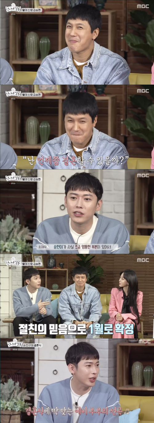16일 오후 방송된 MBC '언니네 쌀롱'에서는 김승현이 내년 1월 결혼을 언급했다.