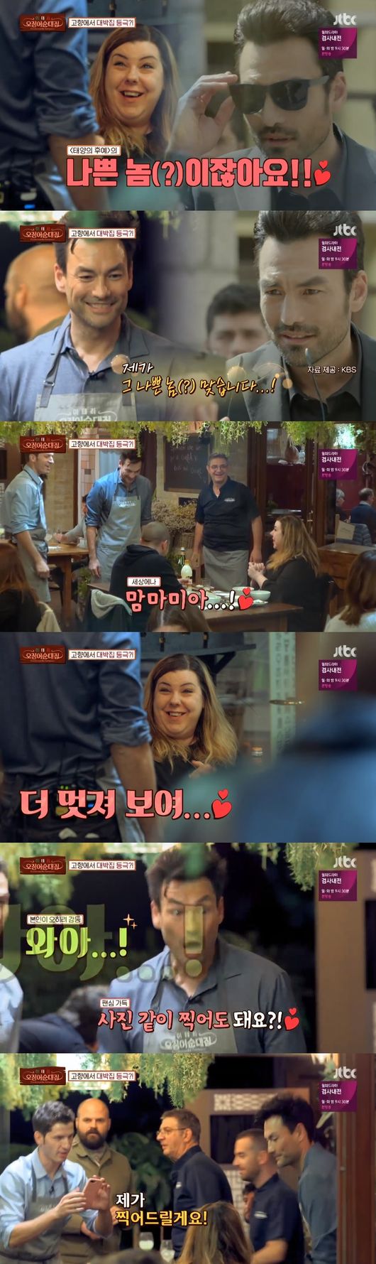 요리를 공부하고 있다는 한국인 손님은 "모두가 젓가락질이 서투니까 오징어 순대 먹기가 쉽지 않다. 오징어 순대 소를 단단하게 만들던지, 아니면 조금 더 두껍게 써는 것도 방법이 될 거 같다"고 조언했다. 이에 완벽한 피드백을 받은 알베르토가 엄지 손가락을 들면서 "최조의 조언이다"고 했다. 이어 이탈리아인 여자친구가 "저는 한국 드라마를 많이 보는데 '태양의 후예'를 봐서 저분을 알고 있다"고 했다. 이에 알베가 맥형을 소환했다. "사진을 찍어되냐"는 팬의 질문에 맥형이 "물론이죠"라고 환한 미소를 보였다. /anndana@osen.co.kr