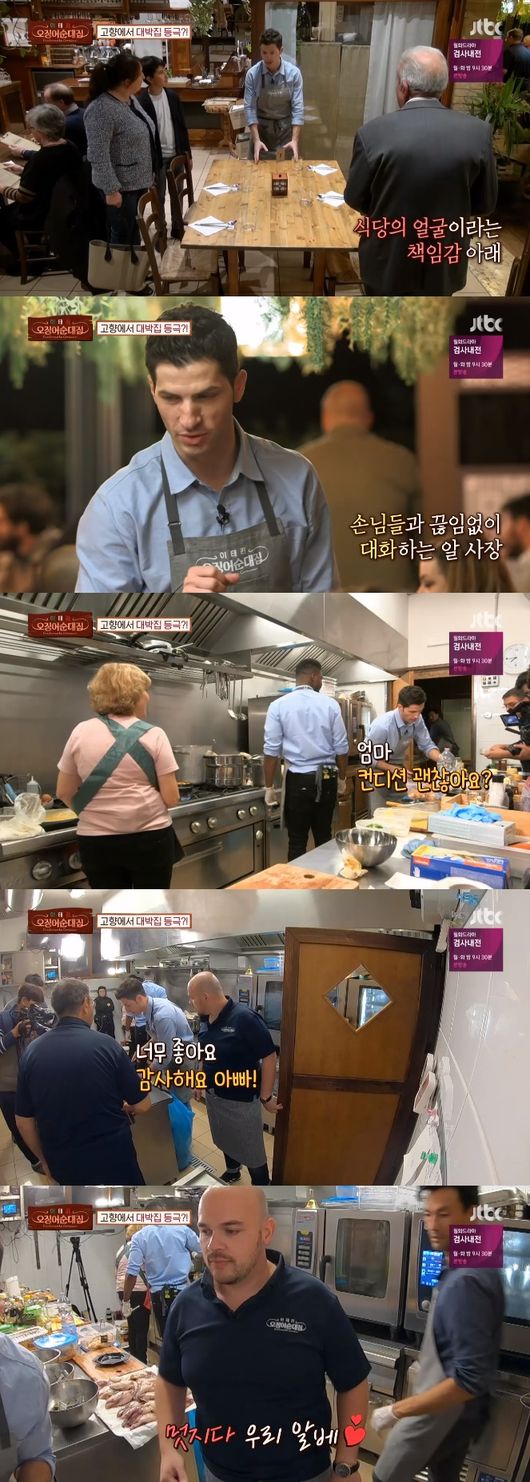 한편 첫 손님이었던 축구 감독님이 알베의 메뉴를 기다리고 있었다. 처음에 김치찌개를 꺼려했던 감독님은 알베의 추천에 찌개를 주문했다. "조금 맵다"는 아빠의 설명에 감독님은 긴장하는 표정을 기었지만, 이내 뚝배기에서 건더기를 한가득 꺼내 밥과 먹기 시작했다. "조금 맵지만 맘에 드네"라는 그의 소감이 이어졌다. 알베는 감독님의 테이블로 찾아왔다. "뭐가 제일 맛있으세요"라는 말에 감독은 김치찌개를 선택 했다. 이에 알베르토는 "안드신다고 했잖아요"라고 하며 활짝 웃었고, "맛있었어"라고 감독이 찬사를 보냈다.