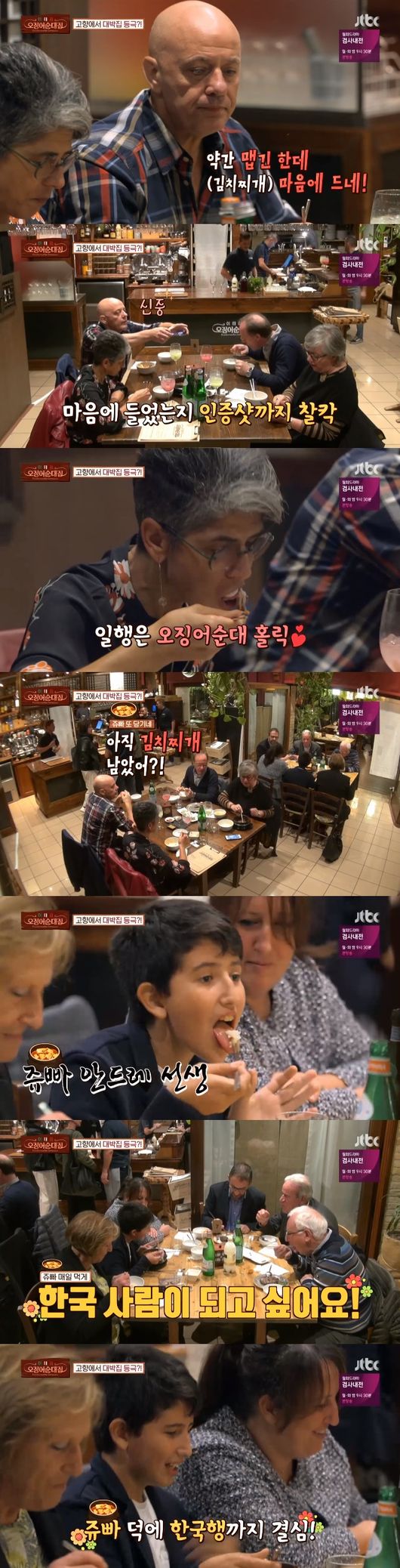 옆 테이블에서도 김치찌개 찬양이 이어졌다. 어린 소년이 "쮸빠를 먹기 위해 한국 사람이 되고 싶다"고 했고, "그럼 내년에 스페인 말고 한국에 갈까"라는 말에 소년이 "저는 너무 좋아요"라고 했다. 이어 엄마가 찌개를 먹으려 하자 소년은 "엄마 그건 제 거예요"라고 했다. 반면, 뒤 테이블에서는 쮸바를 먹은 신사가 기침을 이었다. 호불호가 갈리는 쮸바와 달리 모둠전은 극찬이 일색이었다. /anndana@osen.co.kr