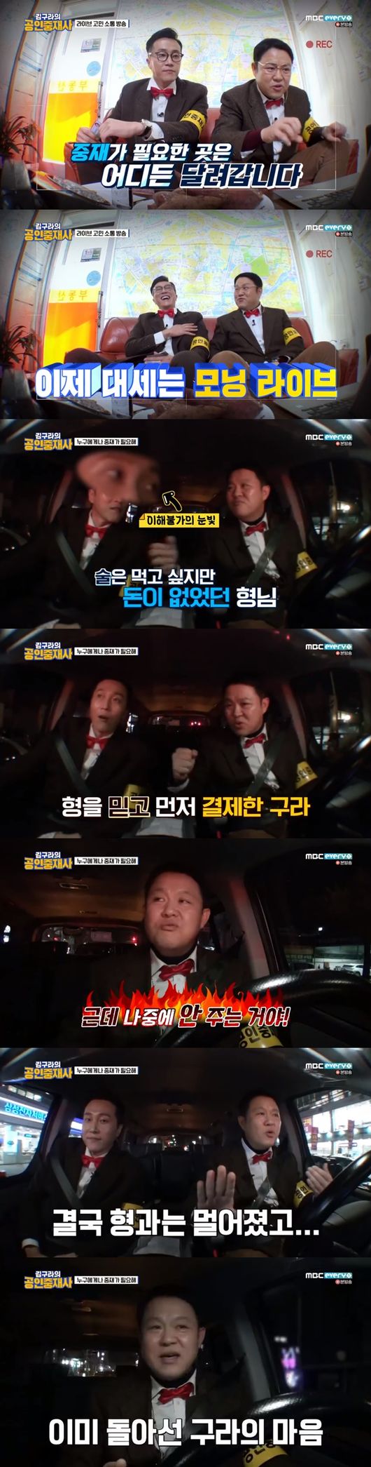 김구라는 고민 상담 이동을 하면서 "예전에 나도 굉장히 친했던 형이 있었다. 근데 그 형이 술 값을 내 돈으로 계산하면 나중에 준다고 하더라. 근데 결국 그 돈을 갚지 않았다. 그러다보니 결국 멀어졌다"라고 말했다.