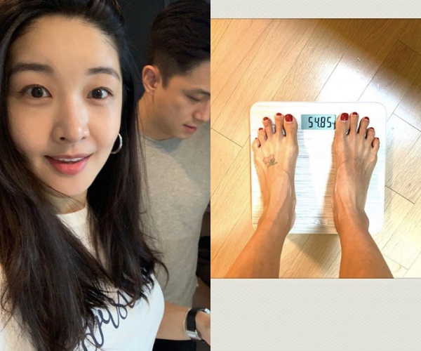 사진 속에서 김빈우는 체중계에 올라갔는데 54kg대의 몸무게를 유지하고 있는 모습이다.