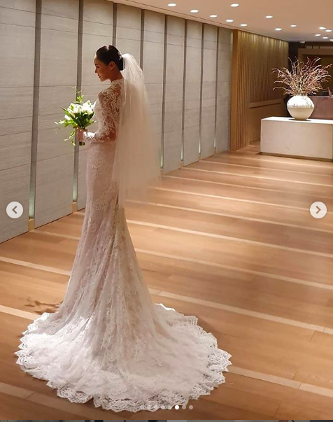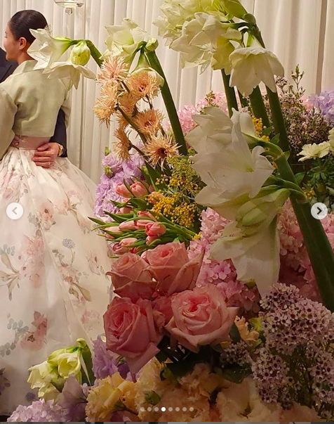 김미연은 17일 자신의 SNS에 결혼식 현장이 담긴 사진 몇 장의 사진을 올렸다. 사진 속 김미연은 순백의 웨딩드레스, 단아한 한복을 입고 우아한 매력을 과시한다. 특히 김미연의 시그니처라 할 수 있는 잘록한 허리가 돋보인다.
