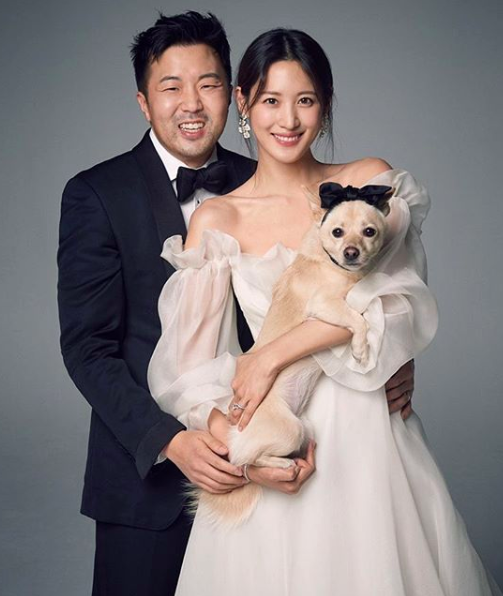차민근은 17일 자신의 SNS에 "Family ♥︎"란 글과 함께 아내 수현, 그리고 반려견과 함께한 사진을 게재했다. 사진 속 두 사람은 웨딩드레스와 턱시도 차림을 하고 있고 반려견은 깜찍한 리본을 머리에 두르고 있다. 화기애애한 가족의 모습.