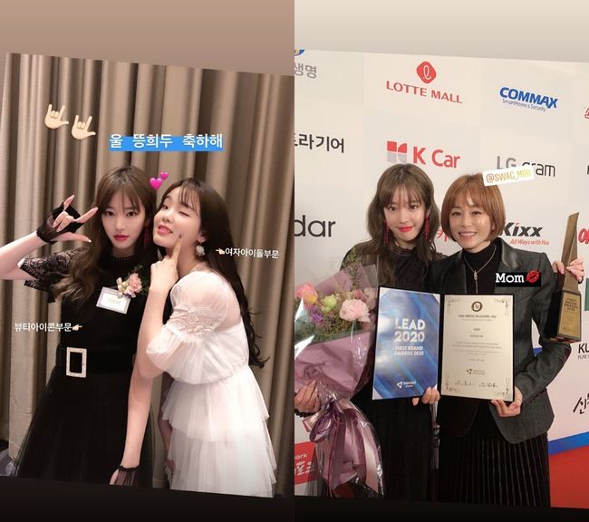 이와 함께 이유비는 엄마 견미리, 오마이걸 승희와 수상의 기쁨을 나누는 모습을 담은 사진을 올렸다.