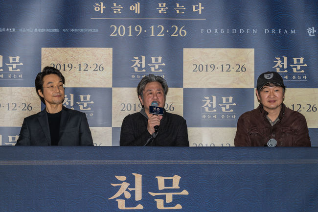 올 겨울, 극장가를 뜨겁게 달굴 영화 '천문: 하늘에 묻는다'(감독 허진호, 제공배급 롯데엔터테인먼트, 제작 ㈜하이브미디어코프)가 지난 16일 언론시사회와 관객들과 함께한 GV시사회를 성황리 개최해 이목을 집중시킨다.