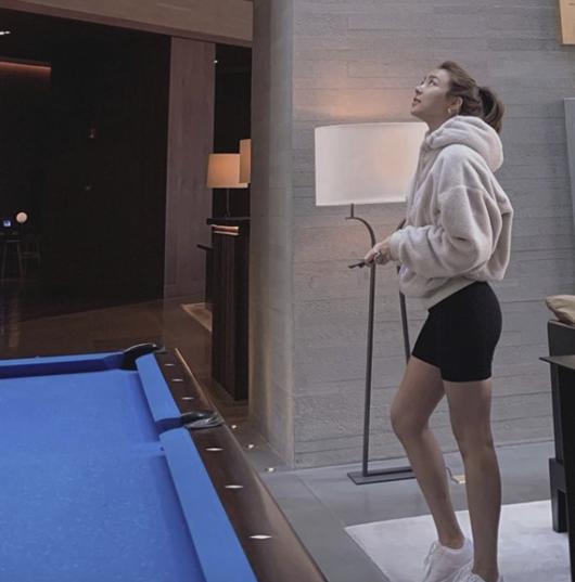 함께 올린 사진에서 김장미는 포켓볼 대 앞에 서서 늘씬한 몸매를 뽐내고 있다. 후드티셔츠에 타이트한 쇼트팬츠를 매치해 가느다라한 다리 라인을 자랑하고 있다. 시선은 천장을 향해 멋진 포즈가 완성됐다.