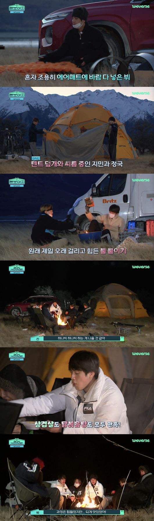 그룹 방탄소년단이 뉴질랜드에서의 두 번째 캠핑을 시작했다.