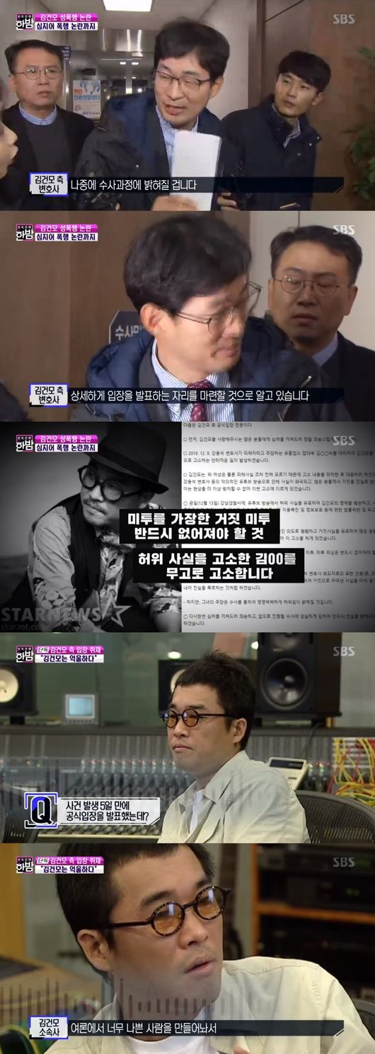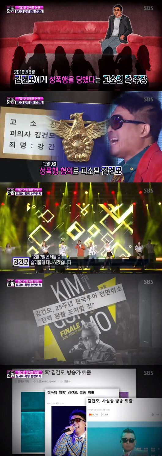 17일에 방송된 SBS '본격연예 한밤'에서는 김건모 성폭행 의혹에 대해 소속사의 입장을 전했다.