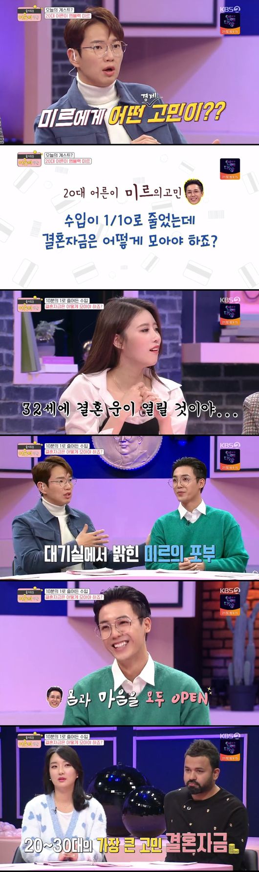 미르가 결혼 자금을 모으고 싶다는 고민을 밝혀 눈길을 끌었다.