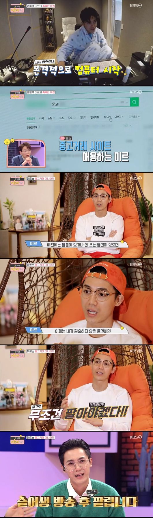 미르는 "예전에 필요하지 않은 물건은 주변 사람들에게 나눠줬다. 근데 요즘은 무조건 판다"라고 말했다. 이어 미르는 "작업실을 900만원 정도 들여서 만들었다. 그래서 처음엔 400만원에 내놨고 지금은 150만원에 내놨다. 근데 안 팔린다"라고 말했다.