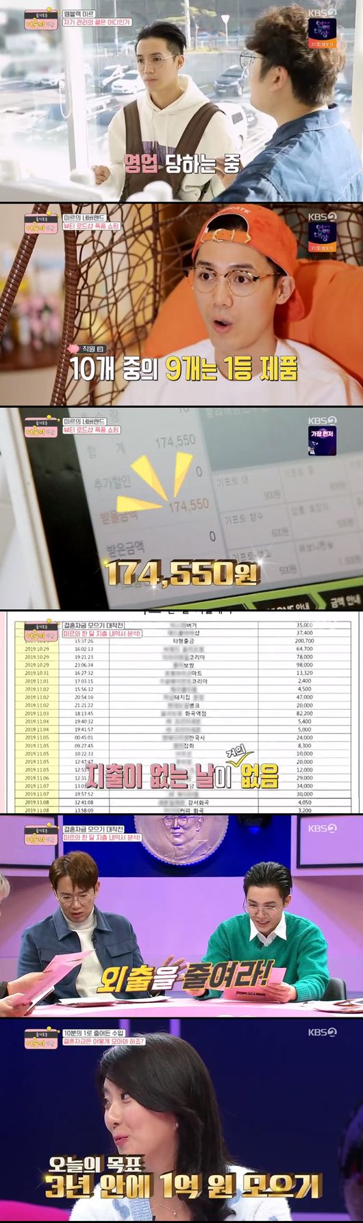 장성규는 "외출을 하지 않는 게 좋을 것 같다. 나갈 때마다 돈을 쓴다"라고 말했다. 이에 미르는 "외출을 자제해야겠다"라고 말해 눈길을 끌었다. 댈님은 "지출을 줄이지 못하면 3년 동안 1억을 만들기 위해서 한 달에 약 271만원씩 저축을 해야한다. 그래야 1억을 만들 수 있다"라고 조언했다.