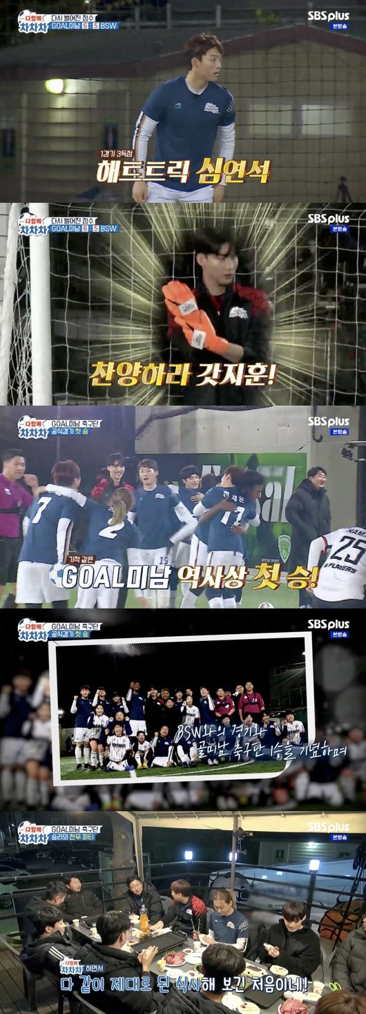 'GOAL미남' 팀 멤버들이 처음으로 승리를 거두며 기쁨을 나눴다.