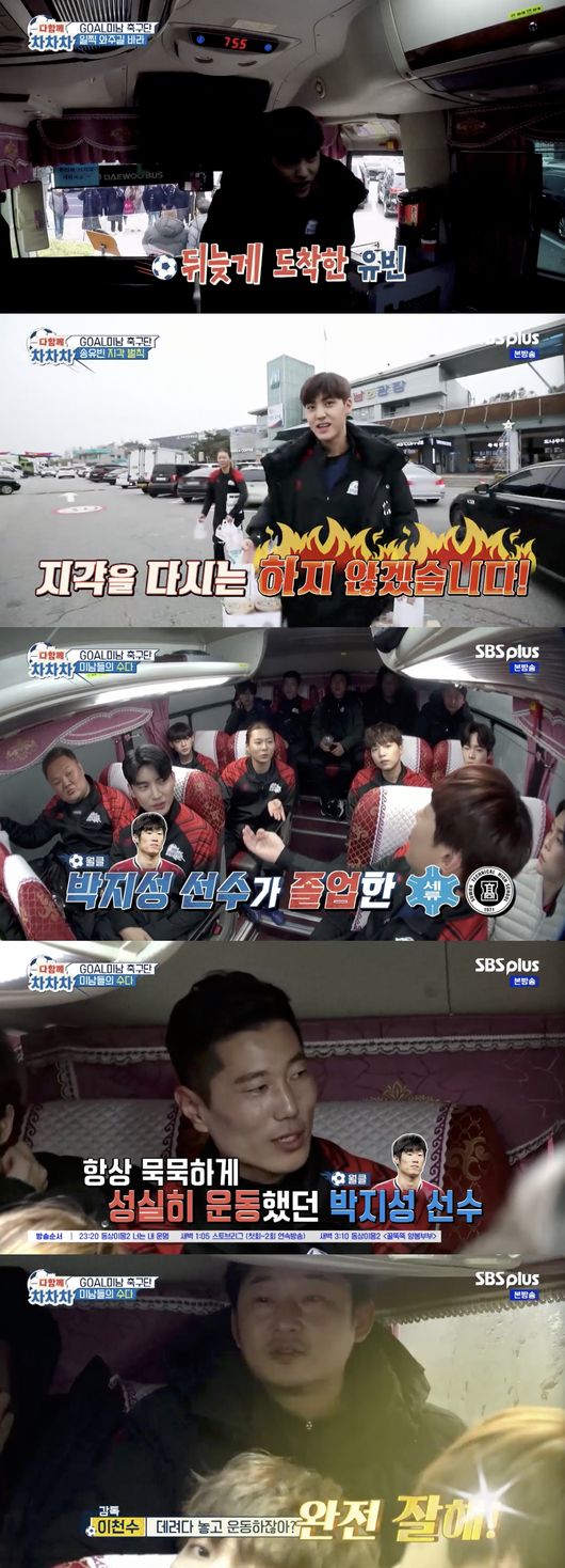 몇 분 후 유승우가 도착했고 김관수와 효진이 차례로 왔다. 이후 이진호, 장문복, 쟈니, 박규선, 한현민, 노지훈, 김재성 코치, 이천수 감독까지 50분이 되기 전 모두 도착했지만 송유빈이 늦어 유일하게 지각왕에 등극했다. 5분 늦게 도착한 송유빈은 벌칙으로 멤버들이 먹을 간식을 사오며 훈훈함을 더했다.