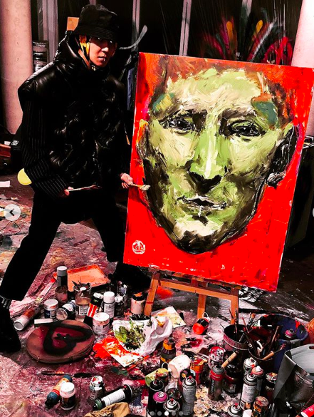 또한 지드래곤은 송민호가 그림을 그리는 모습도 공개했다. 위너 송민호는 자신이 그린 작품 앞에서 포즈를 취하고 있다.