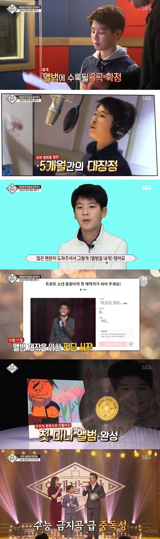 이날 정동원은 유명 작곡가들로부터 곡을 받아 자신만의 앨범을 발표하게 됐다. 정동원은 "기획사에 들어간 건 아닌데 많은 팬분들이 도와주셔서 앨범을 내게 됐다"라고 말했다. 정동원은 팬들의 펀딩을 받아 앨범을 제작했고 수익금은 기부하기로 했다.