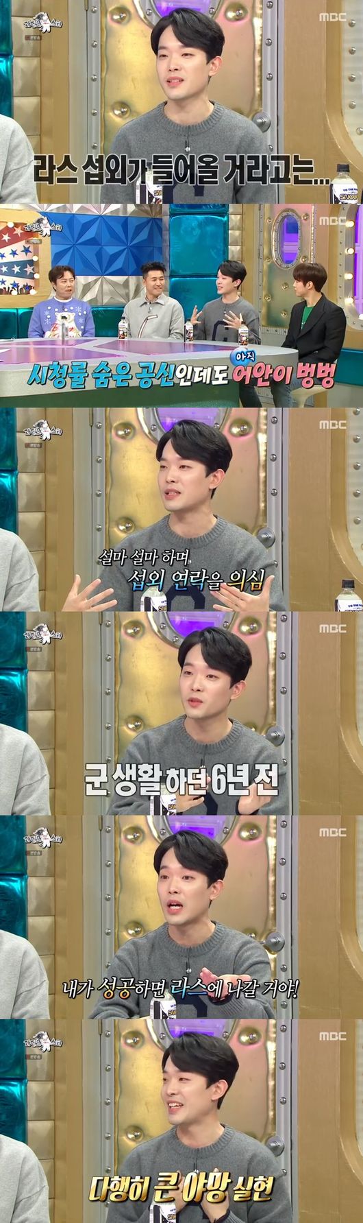 이어 이규성은 "6년 전에 내가 군대에 있을 때 동기들과 TV를 볼 때 내가 성공하면 라스에 꼭 나오겠다라고 했다. 덜 성공하면 '서프라이즈'에 나올거라고 MBC를 계속 봐달라고 말했는데 다행히 라스에 나왔다"라고 말해 웃음을 자아냈다.