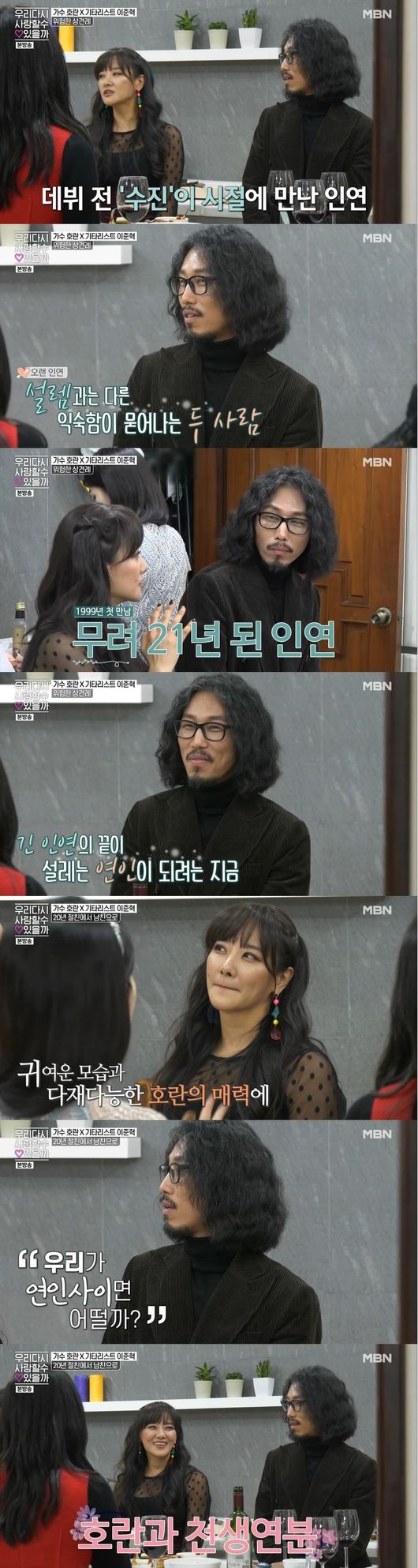 또한 두 사람은 친구로 무려 21년 지낸 인연이라 했다. 새로운 사랑 중이지만 긴 인연 끝에 새로운 연인이 되려는 때라고. 이준혁은 "겉모습과 달리 유리같은 면이 있어, 귀여운 모습과 다재다능한 호란의 매력을 느꼈다"면서 "우리가 연인사이면 어떨까 생각했다"고 했고, 호란은 수줍어했다.