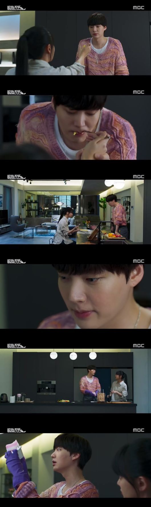 강우는 "먹을 것도 많은 데 굳이 그걸 먹어야 하냐. 익히지도 않고"라고 했고, 서연은 "배로 들어가면 다 똑같아"라고 했다. 이에 강우가 맛있는 요리를 시작했고, 그걸 먹은 서연은 "나랑 장사하자"고 하면서 허겁지겁 먹기 시작했다. "너도 좀 먹어"라고 하면서 서연이 수저를 건네자 "괜찮아 너나 먹어"라고 했지만, 서연은 "내가 먹은 거라서 좀 그렇지"라고 했다. 이 말을 들은 강우는 곧장 서연이 내민 음식을 입으로 넣었다.