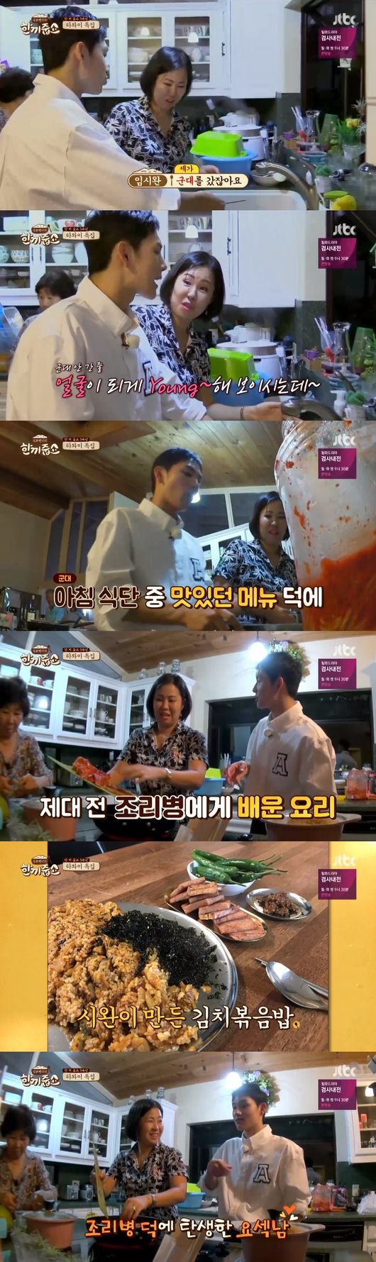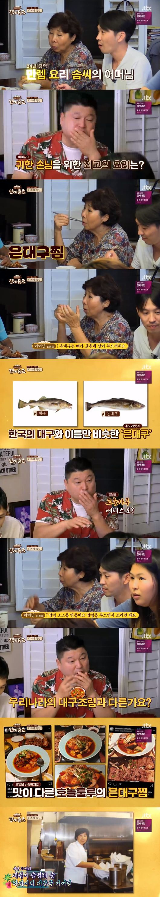 호동이 "하와이 호텔에서 어머님이 오래 있으시면서 제일 잘 만드셨던 요리는 뭐냐"고 물었고 엄마는 "은대구찜"이라 고했다. 이에 호동은 "주방 일이 너무 힘들다. 근데 어머님은 피부가 너무 좋으시다"고 했다. 이에 엄마는 "나는 음식을 하면서 열기를 얼굴로 받는다. 그게 도움이 된 거 같다"고 했고, "스팀 마사지 인가요"라는 시완의 말에 호동이 웃음을 참지 못했다.