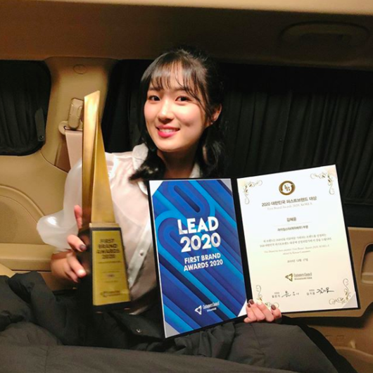 사진 속에서 김혜윤은 트로피와 상장을 손에 들고 환하게 미소 짓고 있다.