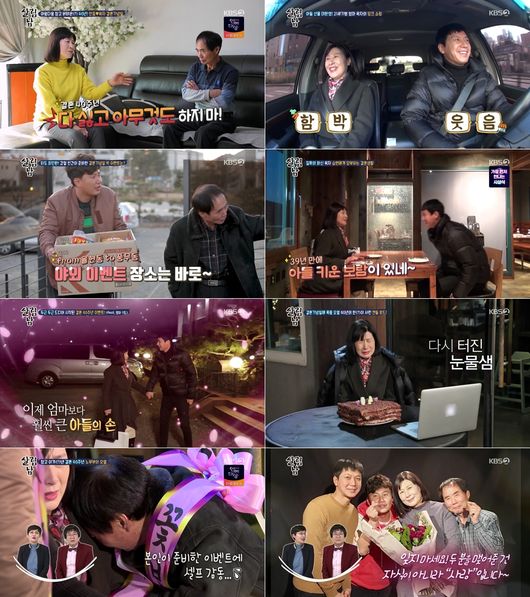식사를 마친 뒤 김승현은 특별히 준비한 게 있다면서 아버지와 동생이 이벤트를 준비한 장소로 어머니를 모시고 갔다. 이 사실을 꿈에도 생각지 못한 채 김승현을 따라간 어머니는 현장을 확인하고는 “살다가 이런 일도 다 있네”라 말하며 눈물을 터뜨렸다.