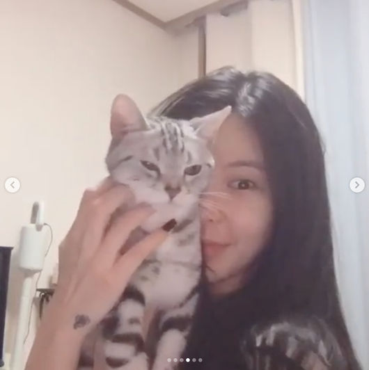 장재인은 반려묘 사진 여러 장을 공유하면서, "한 살이라 아직 크지 않고 아가 티가 난다"고 생김새를 설명했다.