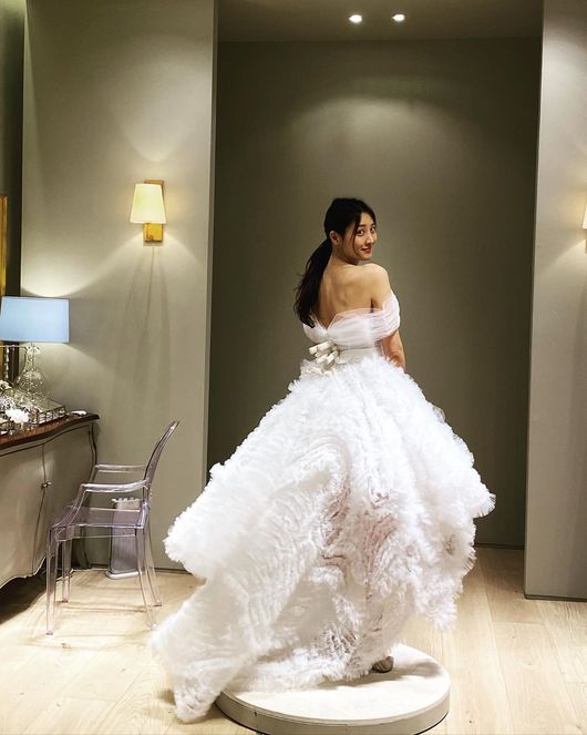 19일 수현은 자신의 인스타그램에 “운명처럼 드레스 피팅날 도착한 뉴 컬렉션”이라는 글과 함께 몇 장의 사진을 올렸다.