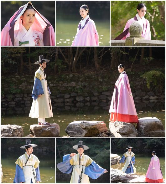이와 관련 진세연, 도상우가 절경의 호숫가에서 재회한 가운데, 극과 극 무드를 드리우고 있는 ‘돌다리 투 샷’이 공개돼 호기심을 자극하고 있다. 극중 강은보, 이재화가 아름다운 연못 위 고즈넉한 누각을 향해 걷고 있는 장면. 강은보는 걱정과 경계심으로 머뭇거리는데 반해, 이재화는 휙 돌아서더니 씩 웃고 어깨춤을 춘다. 과연 불같은 운명을 품은 두 사람에게 이토록 종잡을 수 없는 재회가 발발한 이유는 무엇일지 호기심을 끌어내고 있다.