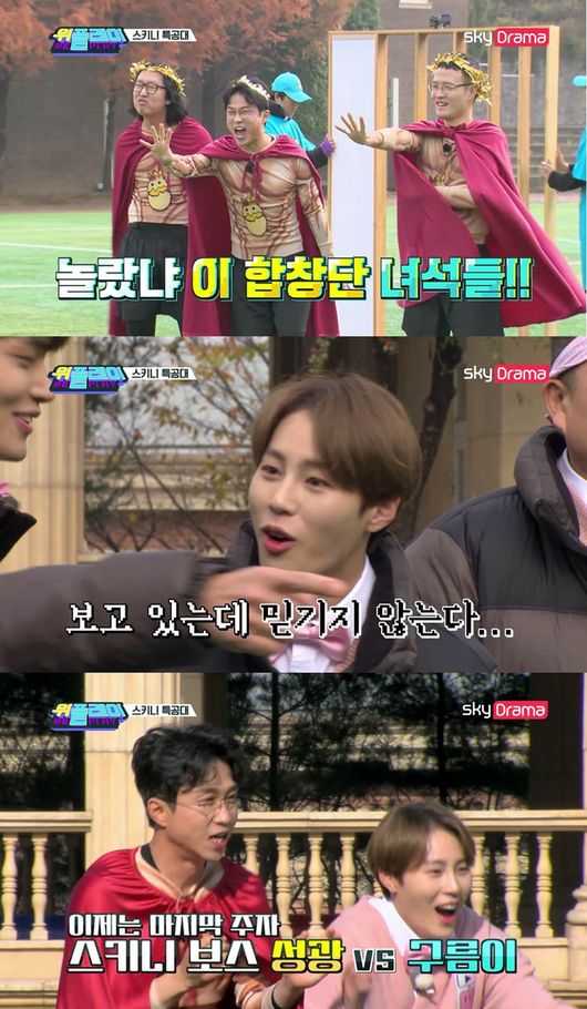 21일(토) 스카이드라마 예능 '위플레이'에서는 연예계 ‘약체 끝판왕’ 김경진, 조정치, 박성광이 ‘스키니 특공대’로 출연해 ‘위플레이’ 멤버들과 이색 달리기 시합을 펼친다.